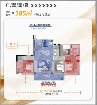 而建面180-185㎡的四房两厅三卫户型,则是专为顶层富豪和质量改善客群量身打制的终极居所。3梯3户的超低密度设想,极大地提拔了栖身的舒服度和卑贱感。您不必担忧电梯拥堵的问题,收支愈加从容文雅。南北对流的结构使得通风结果超卓,穿堂风缓缓吹过,带走室内的炎热,带来大天然的清爽。LDK一体化客餐厅设想(客堂、餐厅、厨房连通),打破了保守空间的边界,构成了一个庞大的家庭核心。无论是举办华诞派对,仍是款待亲友老友,这里都能轻松容纳。部门户型更是具有270°的环幕江景视野,将珠江的绚丽景色尽收眼底。想象一下,正在如许一个宽敞敞亮的客堂里,取家人一路赏识日落朝霞,品尝琼浆好菜,这是多么惬意的人生享受!
